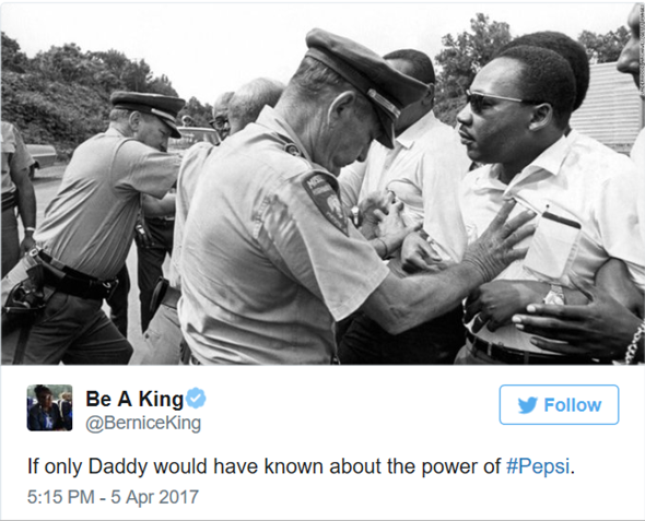 For the past couple of days, social media has been in gleeful uproar over the latest publicity gaffe by a massive brand. Pepsi’s misfired advert features Kardashian spawn Kendall Jenner brokering peace between a crowd of blithely protesting hipsters and the police, who conveniently forgot to bring their taser guns to the party – starring a can of Pepsi as the olive branch.