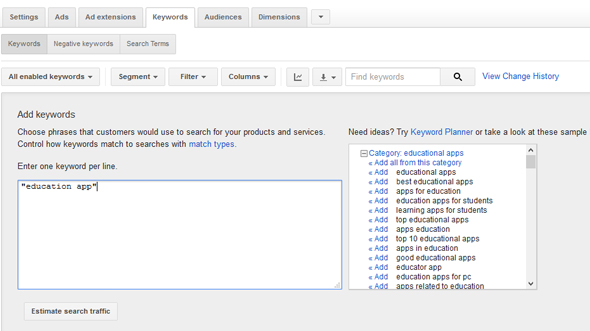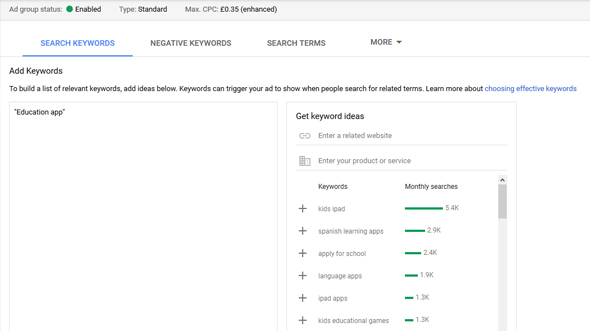 Now this was a feature I really, REALLY liked in the older AdWords. When I was a little stuck for additional keywords to add to my existing ad group, I could just hit “add more keywords” and Google would be smart enough to provide be a whole reel of keywords that were relevant for me to choose from - and nicely categorised: