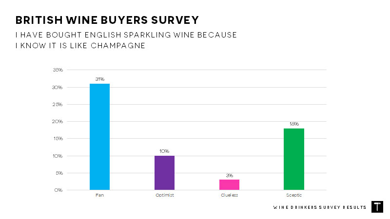 We were particularly interested in the relationship between Champagne and English sparkling wine in the consumer’s mind. And our findings confirmed a feeling that this is what is at the heart of the marketing dilemma for English fizz.