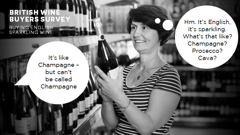 What we found was that nearly half the people who have bought English wine did so because they knew it was comparable to Champagne. This seems fundamental, and relates closely to what we also learnt about the wine buyer’s purchase journey.