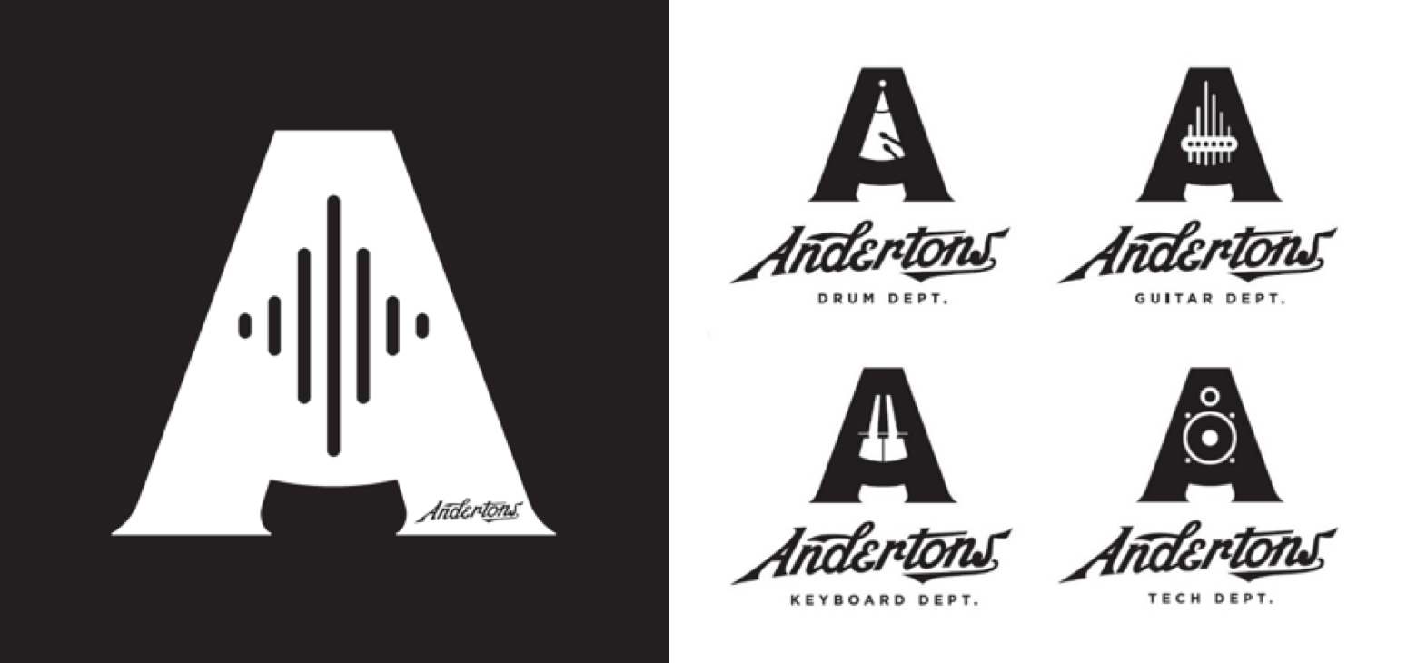 The nifty thing about the icon is its adaptability. There are variations for different departments, which allows for much clearer signposting and a smoother shopping experience. The icon’s flexibility gives Andertons the freedom to expand into new areas in the future with the assurance that they’ll always have an iconic brand imagery to make them easily recognisable.