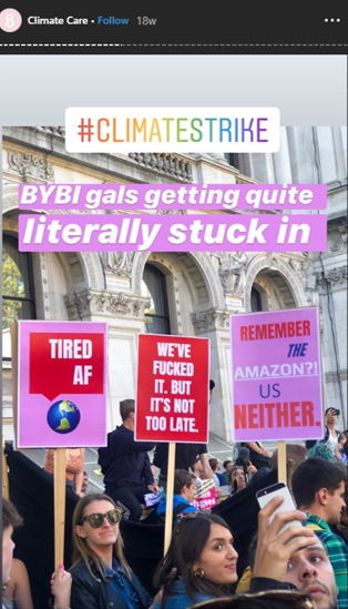 BYBI even have an Instagram highlights story dedicated to climate change action.