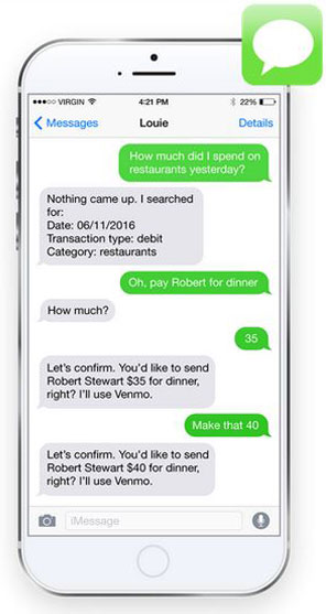 Most companies using chat bots have a simple automation service which answers questions based on a limited series of questions, the Pizza Hut Facebook Messenger app lets you order food and the Bank of America app lets you transfer and move around money by using a text like feature.