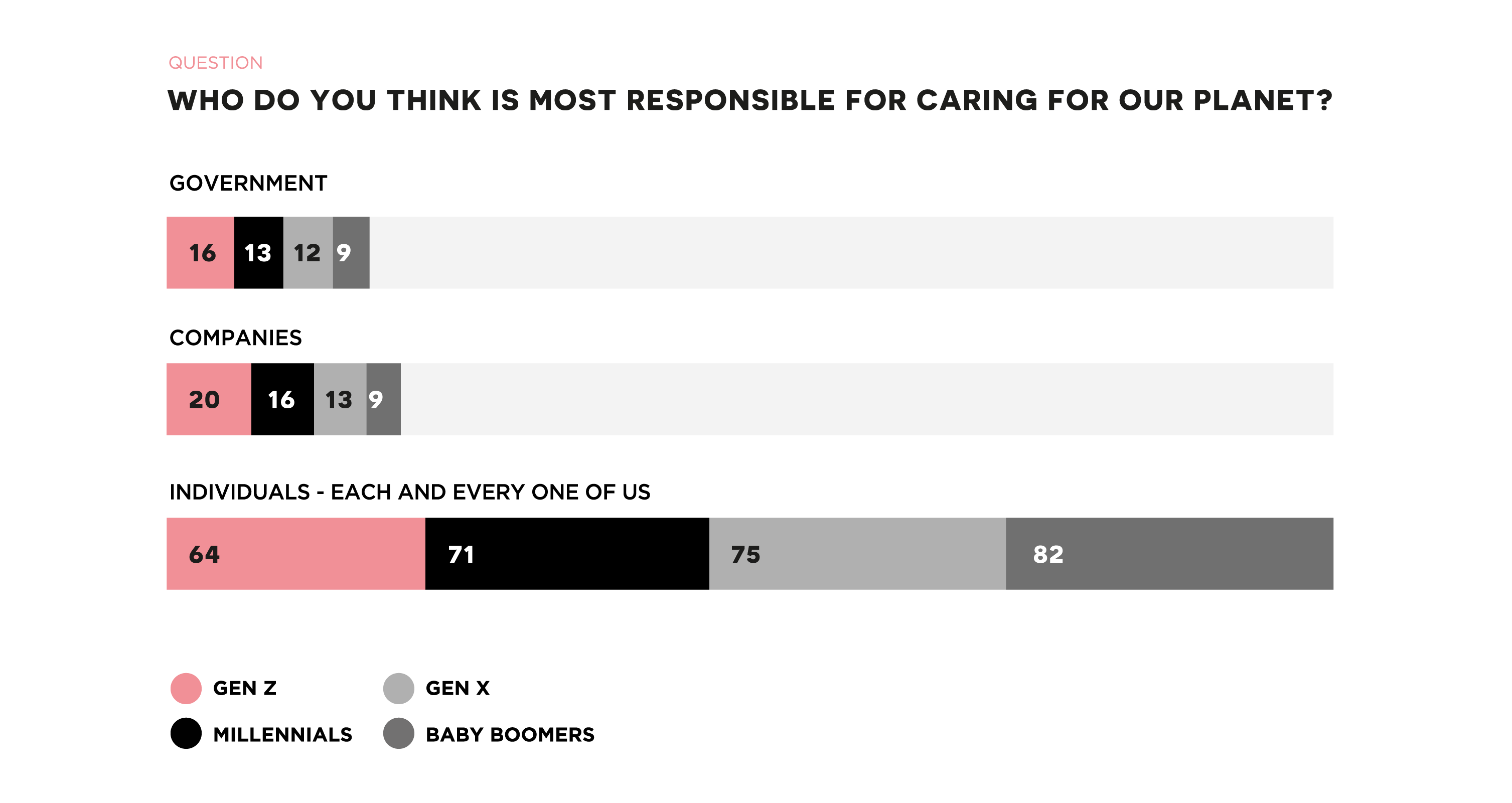 People believe that they – not governments or brands – are the most responsible for caring for the planet.