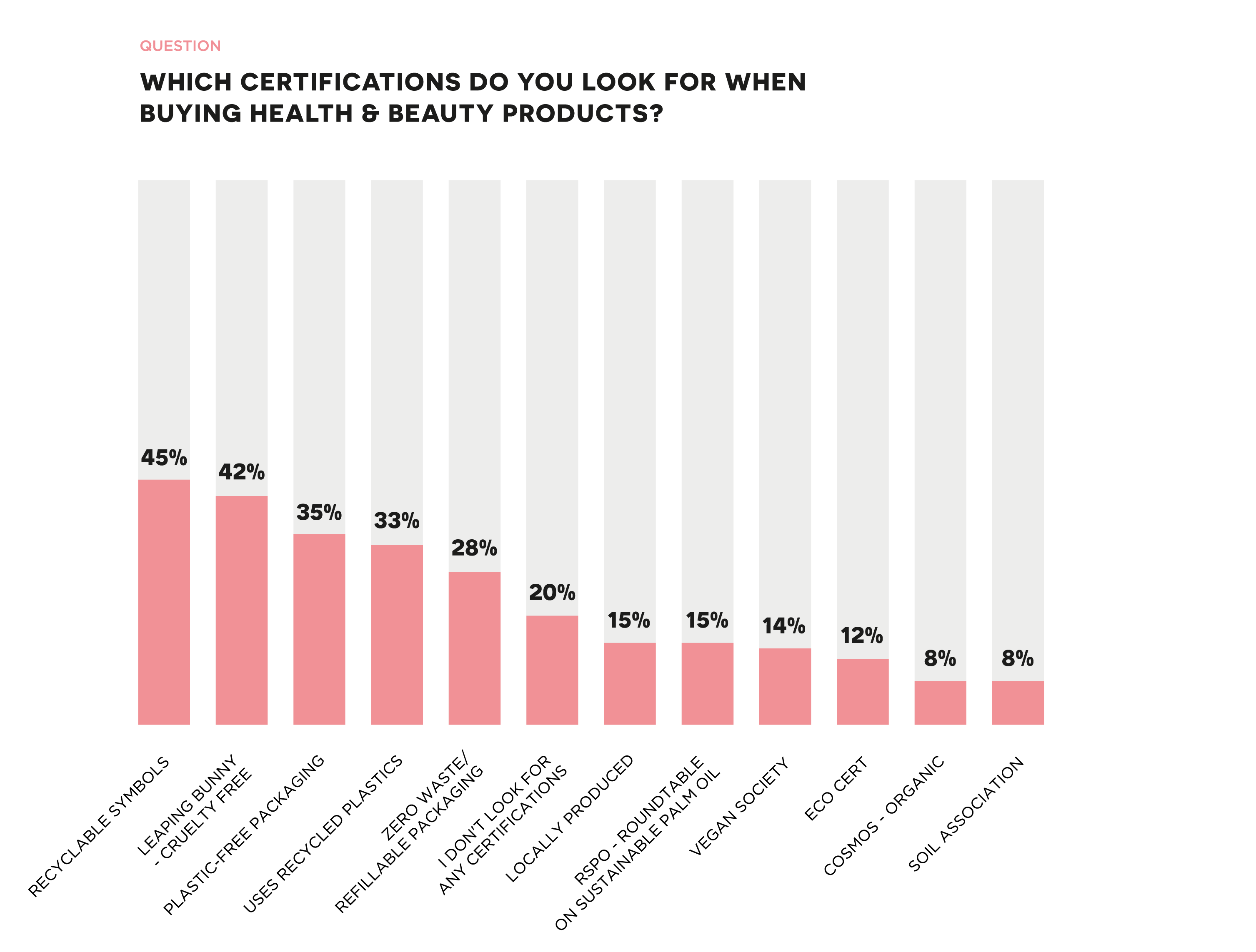 This observation is based on a certain amount of interpretation. Only 12% of respondents said that sustainability wasn’t a priority when purchasing health and beauty products. While it remains difficult to determine to what extent this translates to impact on actual product selection and purchase, if 88% say that sustainability is important to their product selection, it doesn’t seem unreasonable to assume that if they like your brand, they would also like assurance that it is sustainable.