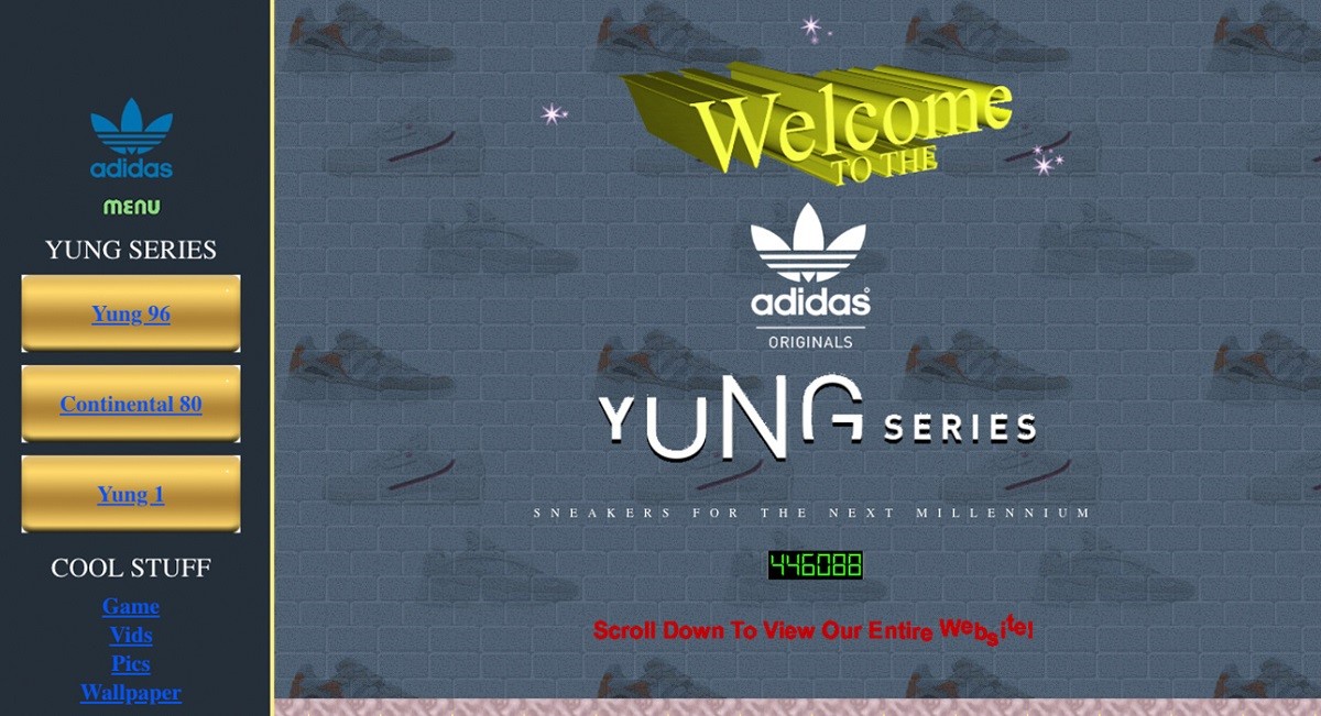 Looking across a variety of brands, it is quite clear that Marvel is probably the most well-known nostalgic website. But sitting close behind, Adidas released an equally similar style of website, consisting of yet more word art, a huge collection of colours, awfully cropped buttons and of course the return of a designers not so favourite font, the famous comic sans.